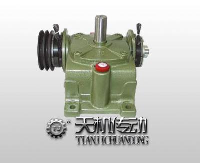 天機傳動電磁離合剎車減速機即蝸輪減速機附剎車離合器TJ-BKVCS型為臥式安裝型,輸出軸朝上。由一個DC24V干式電磁離合器、一個DC24V干式電磁制動器、一個單極臥式蝸輪蝸桿減速機構成,構成多用途、多功能、適用性強的一體化組合。用皮帶輪與驅動(電機)連接,皮帶輪裝置干式電磁離合器一端,與電樞板聯接在一起并固定輸入軸上。